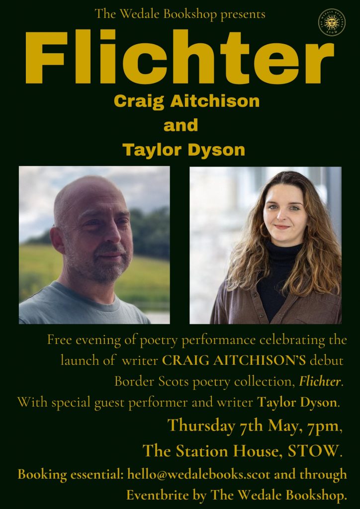 We are delighted to welcome Craig Aitchison back to Stow for the launch of his debut poetry collection in Border Scots, Flichter.
