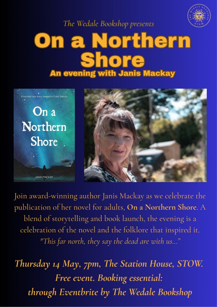Join author Janis Mackay for an evening of storytelling and folklore, celebrating her new novel for adults, On a Northern Shore. A blend of storytelling and book launch, the evening is a celebration of the novel and the folklore that inspired it.